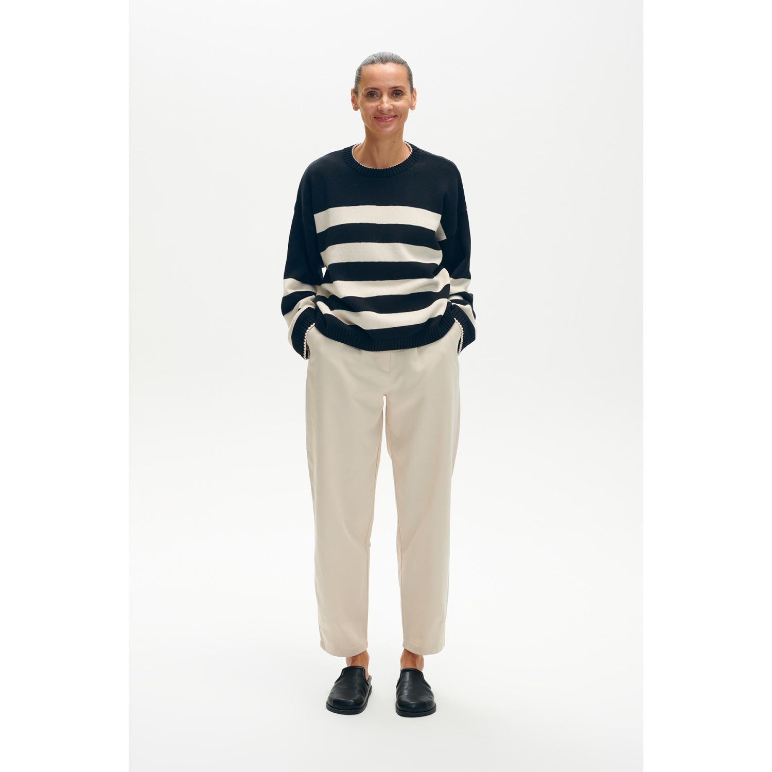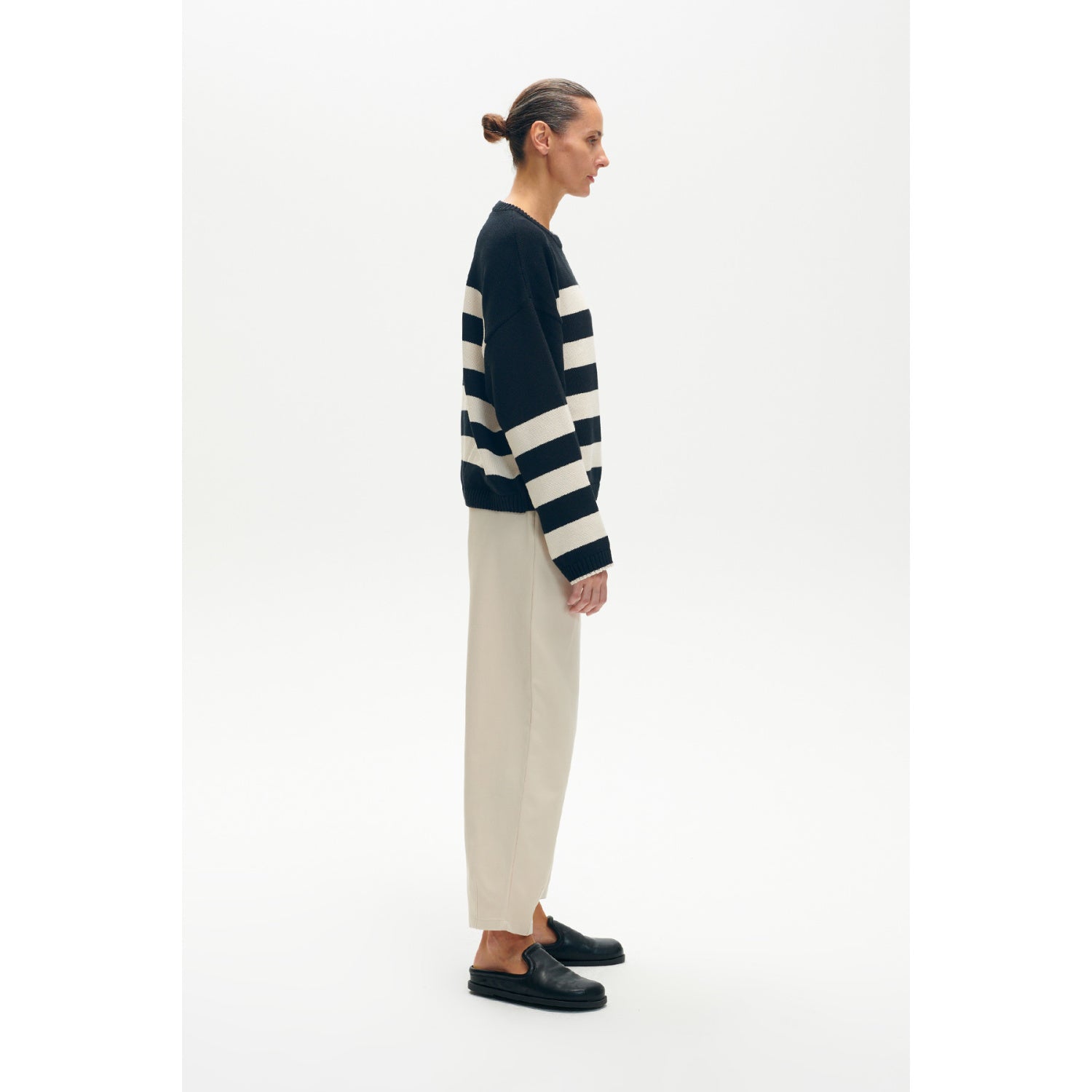 Bavlněný svetr krabicového střihu. Je vyroben z vysoce kvalitní česané bavlny, která se vyznačuje silnou vazbou vláken, takže je velmi odolná a příjemná na dotek. Svetr má kulatý výstřih a spadlé, široké a dlouhé rukávy. Jedná se o univerzální celoroční svetr, který se hodí k mnoha stylům a skvěle se nosí. Svetr vyrábí v polských horách pletárna s dlouholetou tradicí.