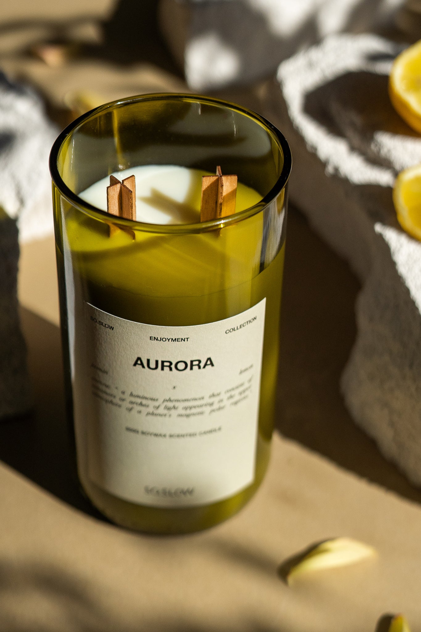 Additional Information: 350 g soy wax, wooden wick, glass from a used wine bottle