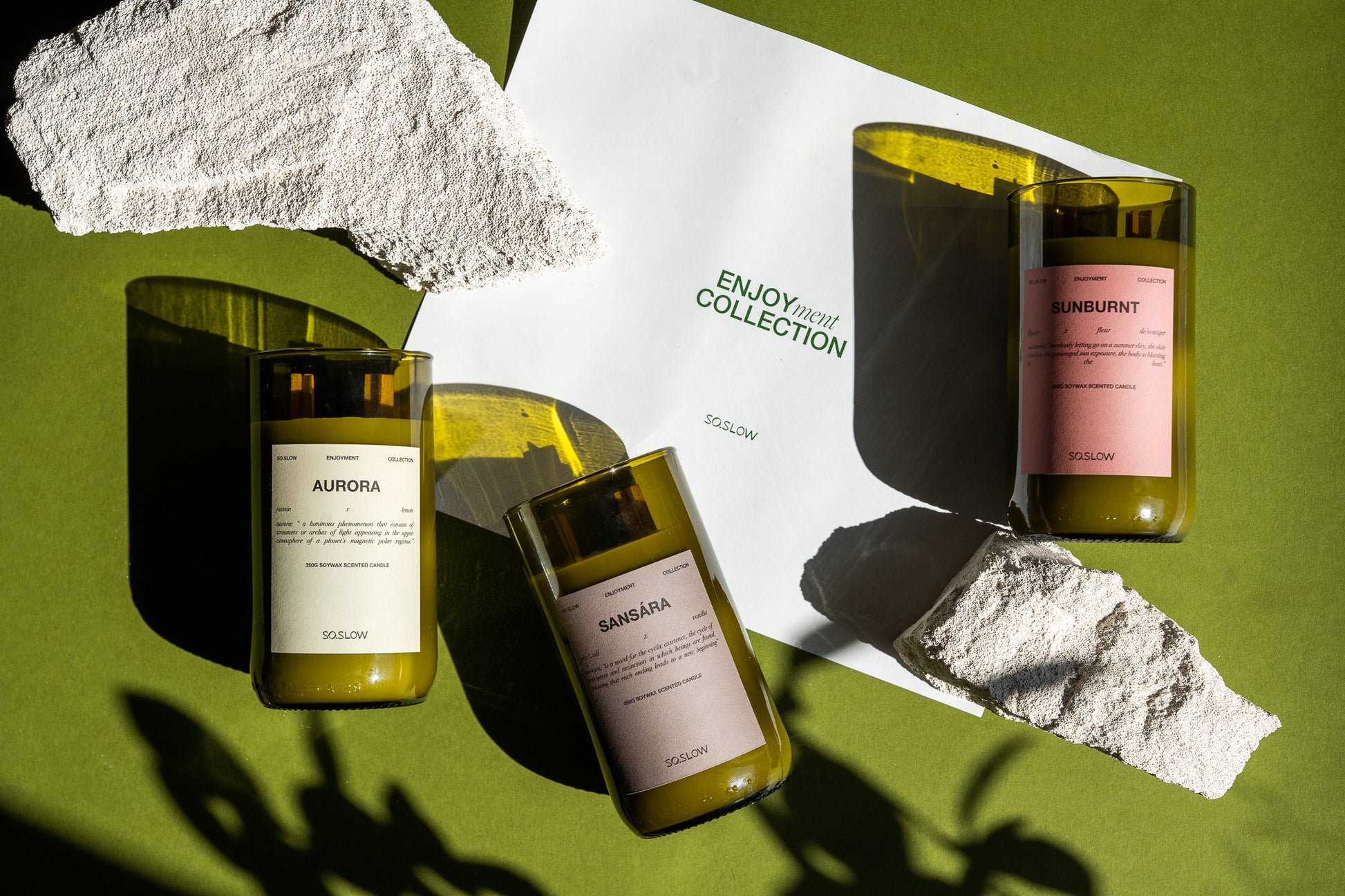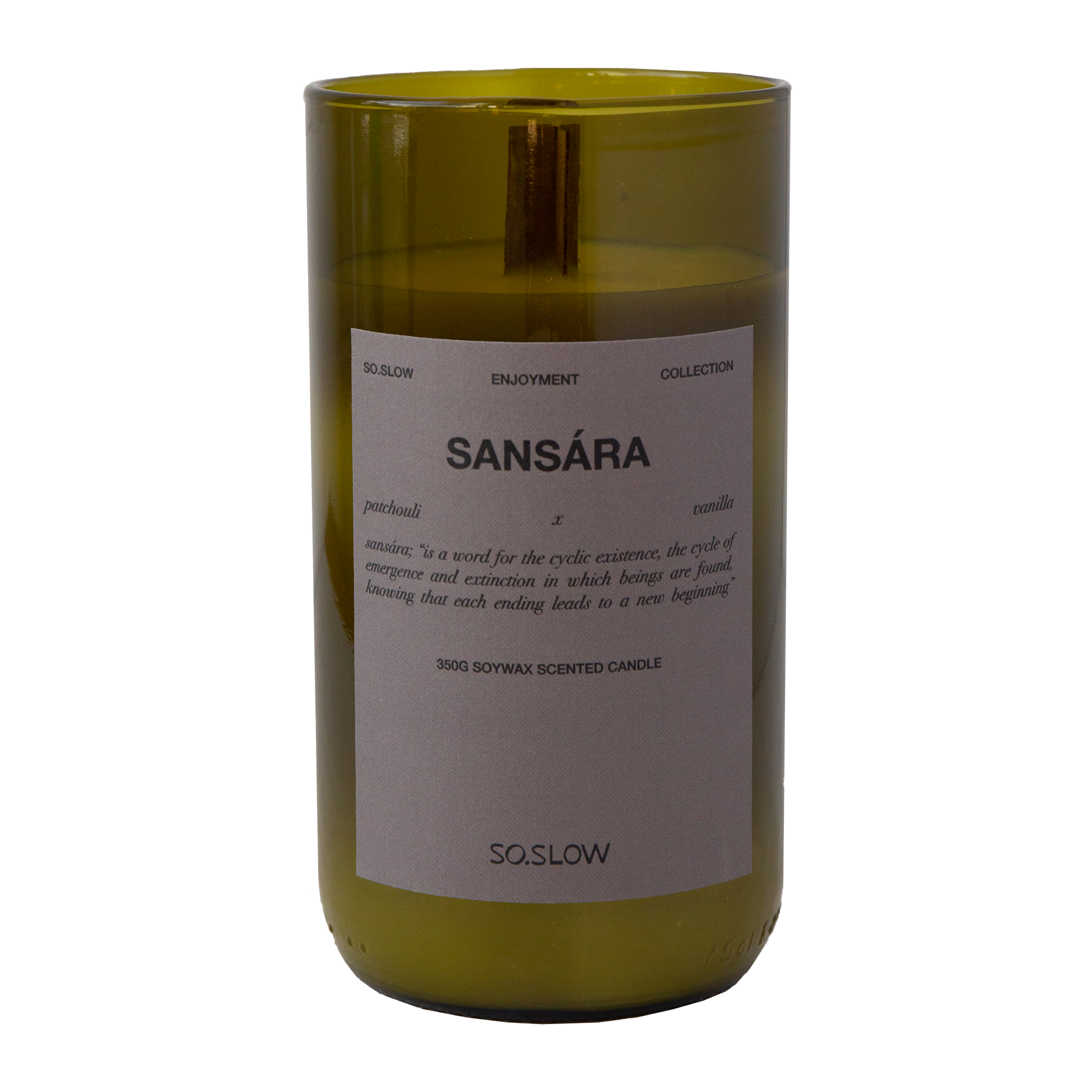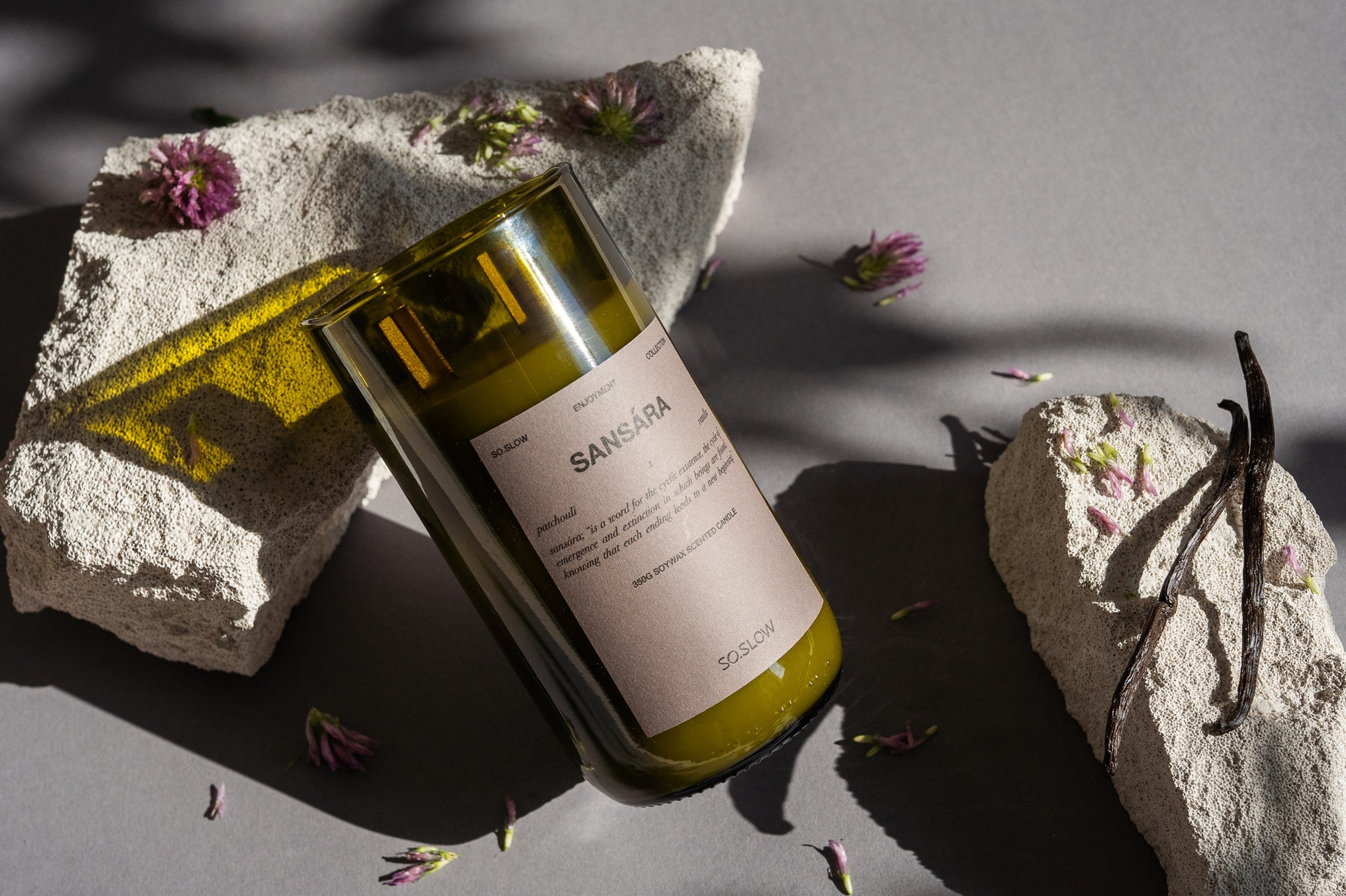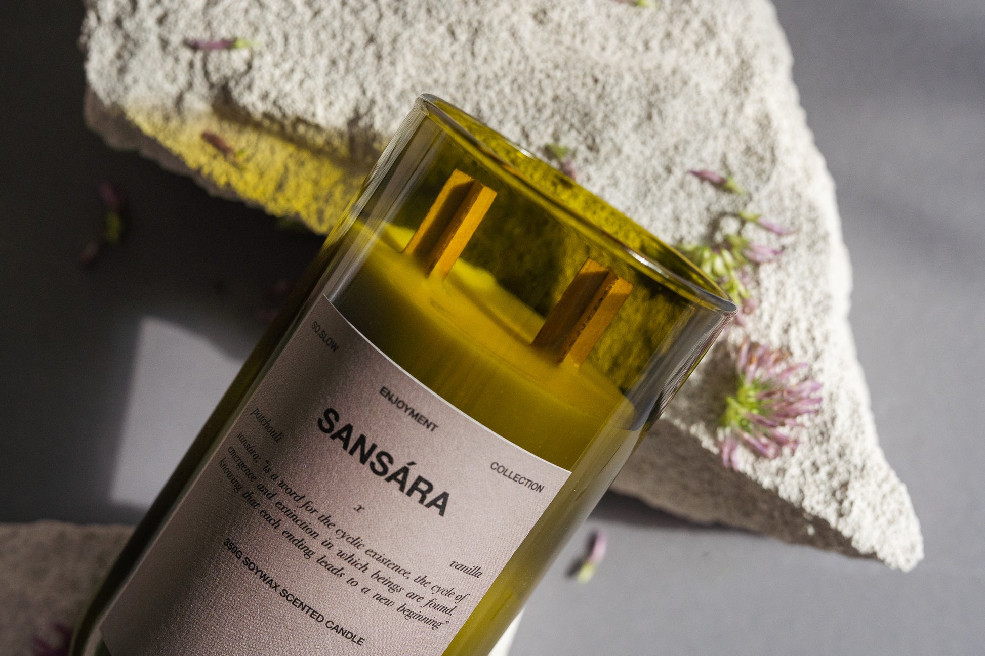 Additional Information: 350 g soy wax, wooden wick, glass from a used wine bottle