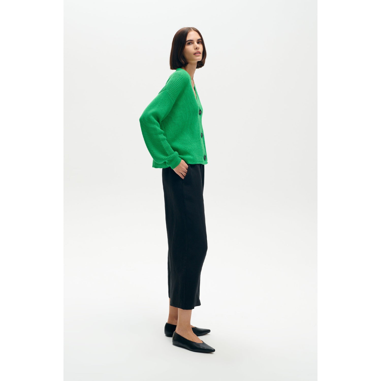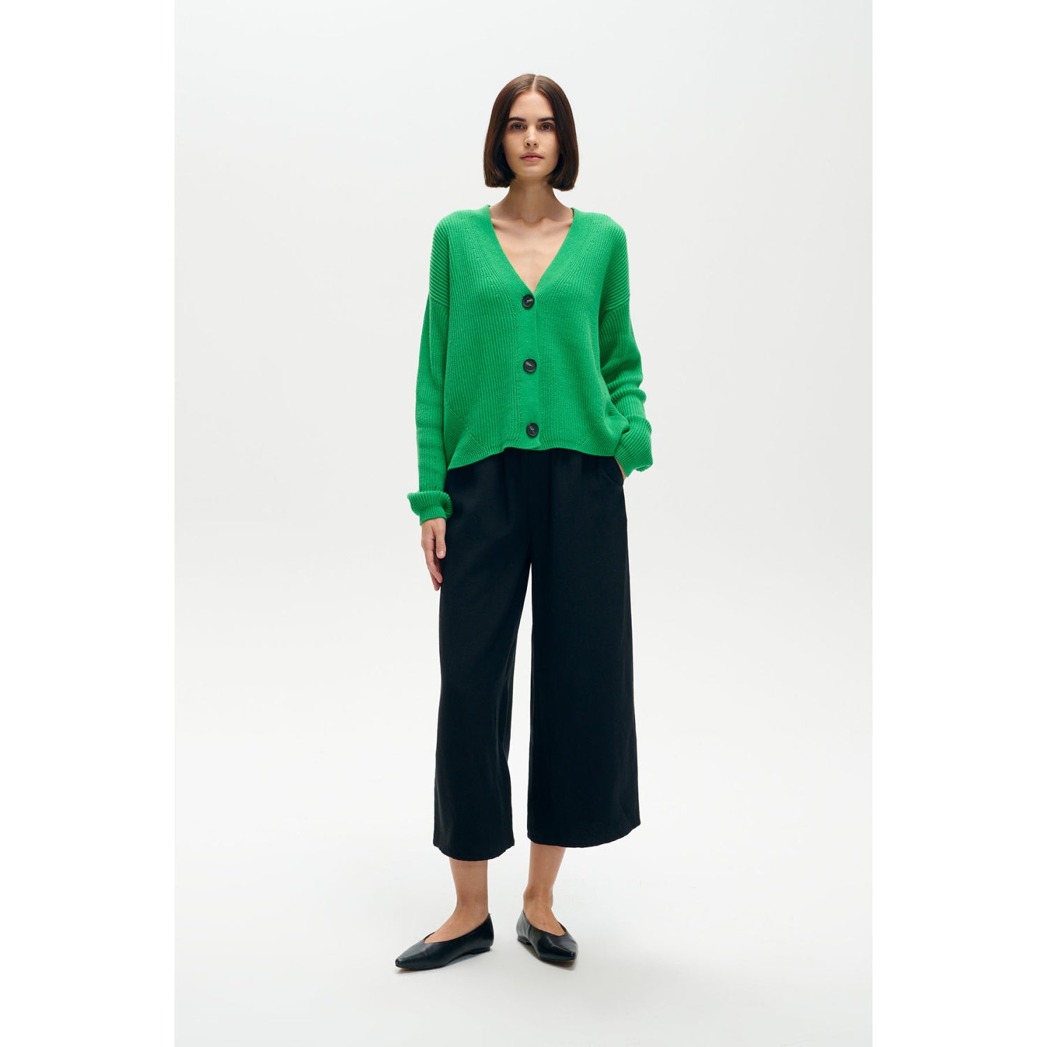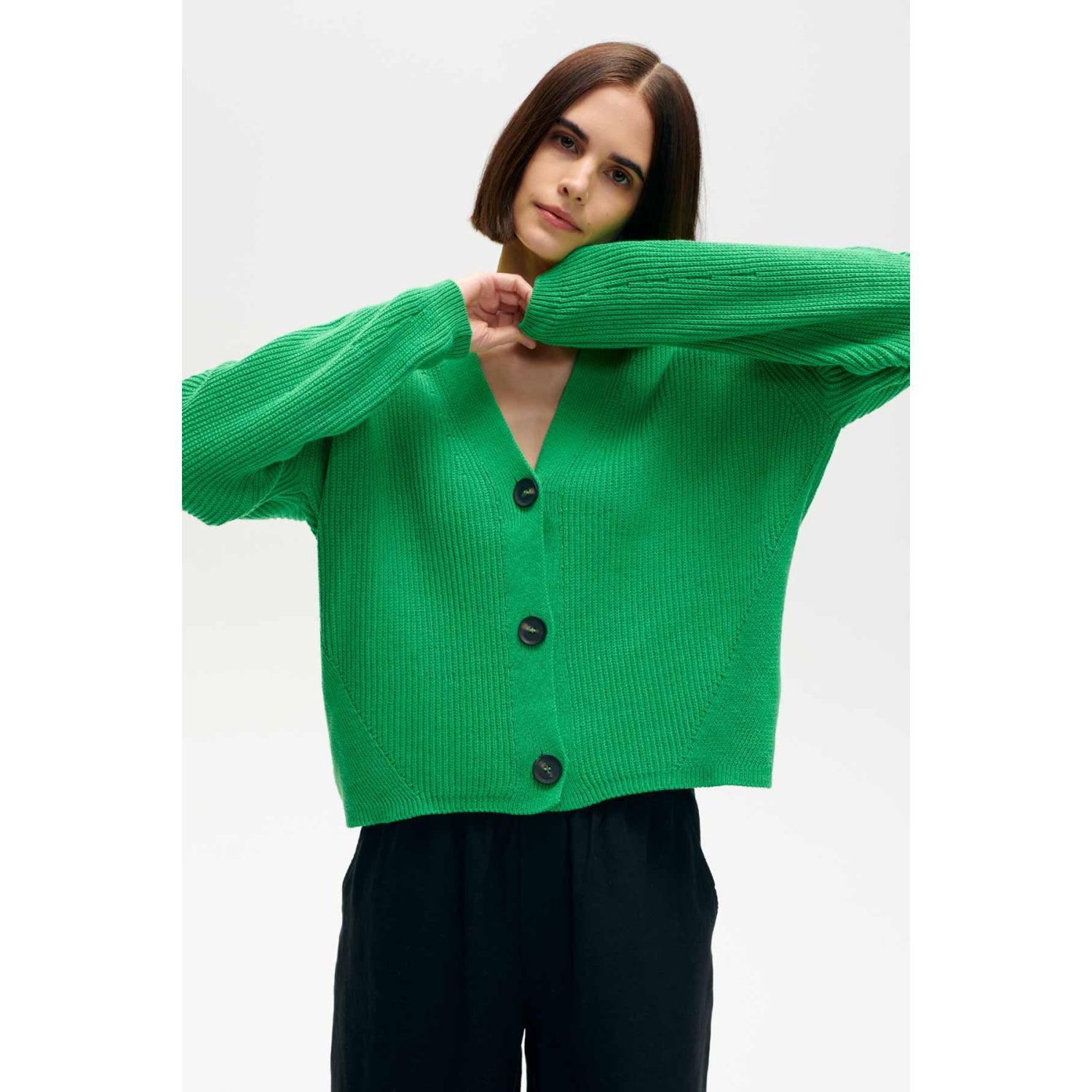 Lehký kardigan vyrobený z vysoce kvalitní směsi konvenční bavlny a recyklované bavlny. Zapínání na knoflíky. Vpředu a na rukávech má ozdobná, jemná očka. Perfektní jako jarní a letní pokrývka. Skvěle se hodí ke klasickému stylu s džínami a bílým topem. Kardigan byl vyrobený v pletařském závodě s dlouholetou tradicí.