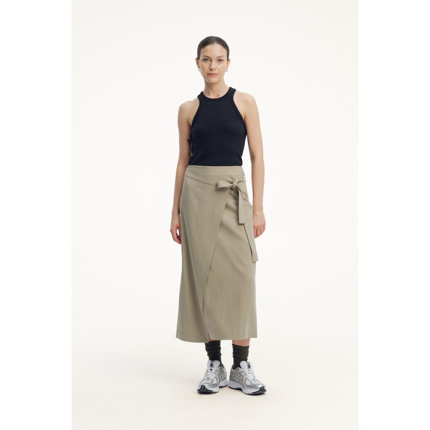 Margot je maxi sukně s nižším pasem a skládaným předním dílem. Je vyrobena z měkké tkaniny, a to 100% lyocellu, s efektem "peach skin". V bočním švu sukně je skrytý zip. Margot je styl, který čerpá inspiraci z estetiky 90. let a osloví milovníky ležérního stylu.